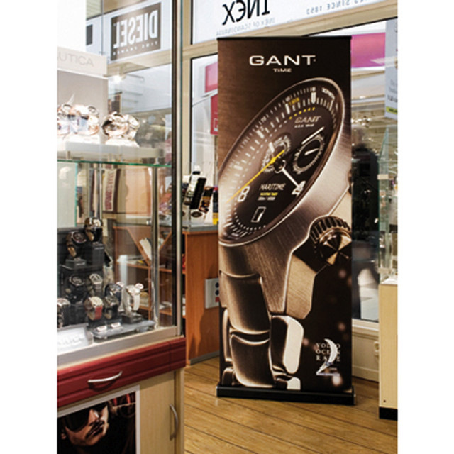 Get a stunning, quality-built banner stand display at a very affordable price! This economical, retractable banner stand comes complete with a full-color graphic and features fast, easy setup. The base of this banner stand houses the graphics cartridge, allowing for quick replacement of your graphics. Additional replacement cartridges are available, giving you an easy way to update your display hardware with a new look!
