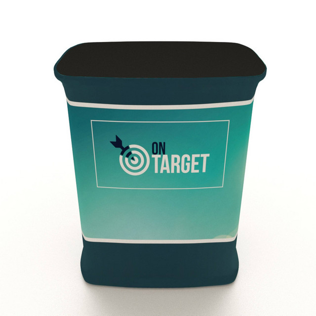 This Mobi counter makes it easy to bring a horizontal work surface to your event. Plus, its graceful wrap-around graphic delivers one more way to put your important messaging front-and-center.