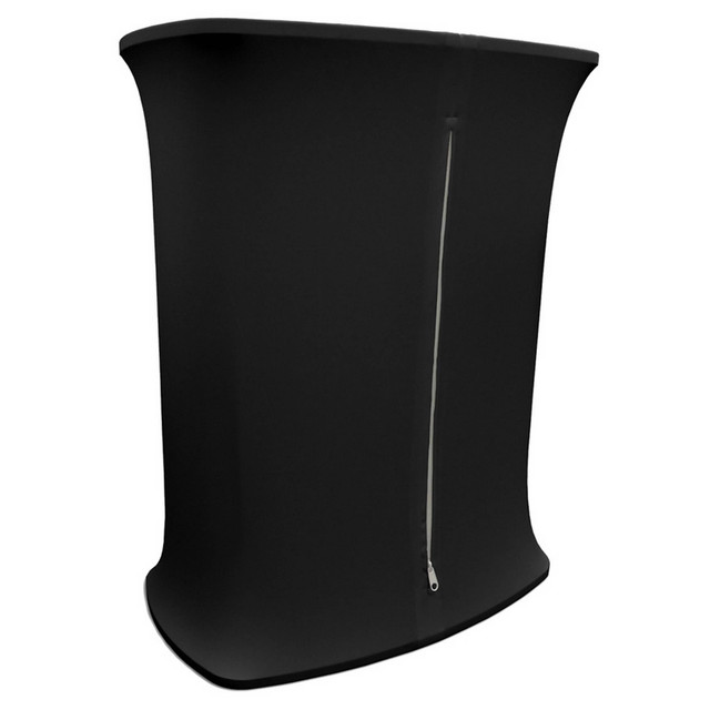 The resulting finish is smooth, curvaceous, and virtually wrinkle-free. A zippered slit in the back of the fabric lets you access the open area above the base, so you can hide extra business cards and other odds-and-ends.